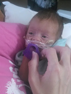 So, we are into our day (about 11) and he'd been good (no signs of a brady). So I got comfortable with the idea of holding him again. Decided I'd do that after the 2 o'clock care, and that lil booger had 2 bradys while I was holding him again. On one of them his feeding tube had come out so, once he was suctioned he was fine. Neither one was anything like yesterday, but enough to make me give him a good talking to. I explained to him that he is aging me quickly! I told him that thank goodness for hair dye because Amy is going to cover up my gray hairs he's giving me! He smiled when I told him that...he plays possum very well. After we snuggled, I was doing his care time and noticed his chest didn't look right. I questioned it so the doctor came to have a look and listen. The doctor said that Hudson looked like he was working harder to breathe, probably from yesterday's episode and that she was going to give him more flow on his vapotherm to help expand him so he wasn't working so hard. She scheduled another chest xray in the morning to see how his lungs look. The doctor was telling me, the bradys could be a sign that Hudson has an infection so overnight if he has any difficulty they will do a septic work up...cultures to see if he has an infection so they can treat.